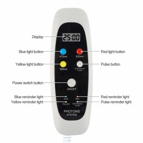 Red-640nm,yellow 583nm,blue-423nm red light-195pcs,yellow light-194pcs,blue light-184pcs,total 573pcs light,3colors+4 mixed color