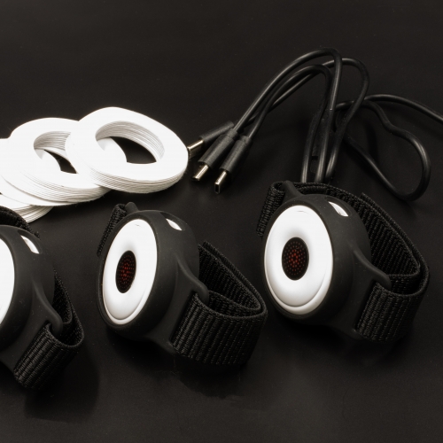 3 sets bestaan uit 9 Acu-leds, 3 usb oplaadkabels, pleisters, 9 rubber fixator banden